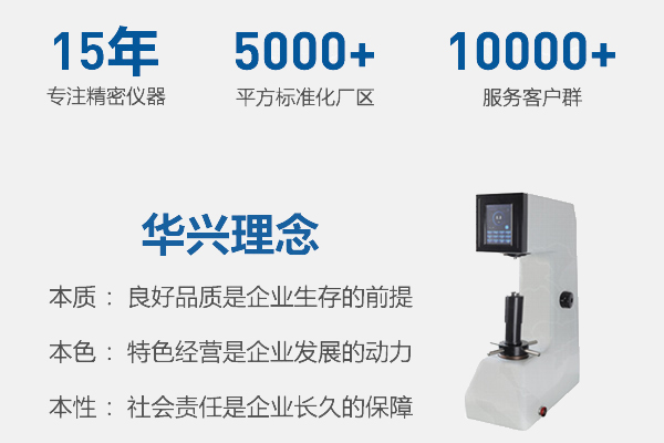 萊州市華興測試儀器有限公司是從事測試儀器,硬度試驗儀器的廠家,具有雄厚的設計、開發、制造能力。 本公司對老產品不斷的進行更新改造,于2004年在試驗機行業推出硬度試驗儀器專利產品HBS-3000型數顯布氏硬度計,HBD-3000型電動布氏硬度計、HB-3000B型布氏硬度計,HB-3000B型新型布氏硬度計,外形及內部結構國內較早, 滿足了用戶需要,贏得用戶的信任,形成了市場網絡。產品廣泛用于機械制造、冶金、化工、電力、大專院校,科研單位使用,并根據用戶需求承接為大型冶金企業設計、開發、制造在線專用試驗儀器。